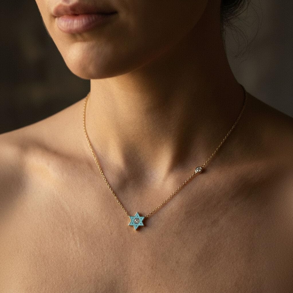 Pink or blue Jewish Star Necklace with a sparkling gemstone