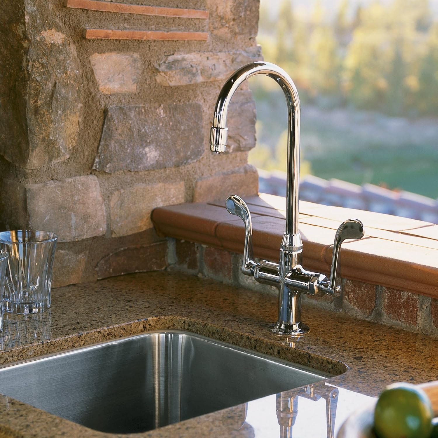 Product description Kohler Essex Single-hole Two-handle Bar Faucet with Wristblade Handles Brushed Bronze SKU: K-8761-BVWith its traditional barroom look and stylish blade handles, this Essex bar sink faucet brings classical flair to your entertainment area. The high-arch, gooseneck swing spout offers plenty of room for prepping food and drinks as well as handling cleanup tasks, making it easier to entertain large groups. The blade handles are easy to turn off and on, even when your hands are full.Two blade handles offer separate control of hot and cold water.High-arch gooseneck swing spout offers superior clearance for filling pitchers, chilling bottles, and cleanup.Ceramic disc valves exceed industry longevity standards, ensuring durable performance for life.Solid-brass construction.KOHLER finishes resist corrosion and tarnishing.Single-hole or three-hole installation (escutcheon sold separately).Requires escutcheon for three-hole installation.** Amazon.com The Essex faucet, with wristblade handles and a gooseneck spout, offers effortless, consistent operation. Its 10-inch-high swing spout features a clean, functional design to accommodate a wide range of entertainment sink applications. Constructed of solid brass and featuring washerless ceramic disc valves, the faucet is designed to withstand the rigors of daily use and provide enduring, reliable performance. Available in an array of durable, lustrous finish choices, including Vibrant PVD color finishes, the Essex entertainment faucet inspires a wide range of decorating ideas. The faucet may be mounted directly onto a countertop, a single-hole sink or with matching 10-inch escutcheon plate on a three-hole sink. From secondary kitchen sinks to wet bar or game room sinks, Essex faucets add convenience and style when entertaining friends and family.KOHLER Kitchen Faucets Behind the stylish design of KOHLER® kitchen faucets is a high standard of functionality and versatility because, at Kohler, we know todays hard-working kitchens require effective, cutting-edge designs that can reliably perform multiple tasks with ease. Whether youre preparing vegetables, safely filling a large pot over the stovetop or washing dishes, our kitchen faucets help create an efficient workspace that accommodates your needs and complements your lifestyle. Our extensive offering of pullout and pull-down kitchen sink models, along with a wide array of pot fillers and entertainment sink faucets, is meticulously constructed only of brass and zinc never plastic to provide enduring strength and beauty. In addition, KOHLER faucets are available in a range of exclusive Vibrant® PVD color finishes that are uniquely bonded to our faucets for exceptional resistance to scratching, corrosion and tarnishing. Finally, with minimal tools and flexible water supplies, our innovative "No Sweat" installation solutions save you time, effort and money. All KOHLER faucets carry a lifetime limited warranty for as long as the original consumer/purchaser owns his or her home.About Kohler Co. Founded in 1873 and headquartered in Kohler, Wisconsin, Kohler Co. is one of Americas oldest and largest privately held companies. Kohler is a global leader in the manufacture of kitchen and bath products, engines and power generation systems, cabinetry, tile and luxury home furnishings, and international host to award-winning hospitality and world-class golf destinations. Kohler Co. is known around the world for plumbing products, its traditional core business, and its flagship brand: KOHLER.